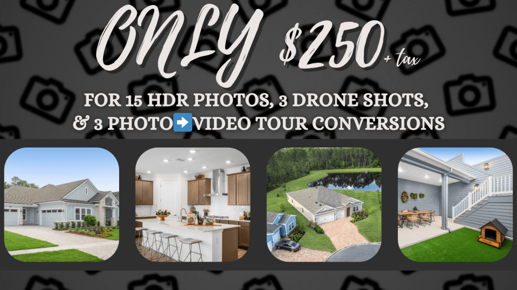 OUR MOST POPULAR SPECIAL!!! – ONLY $250 for 15 HDR Blended Photos, 3 Drone Shots, & 3 Photo➡️Video Tour Conversions